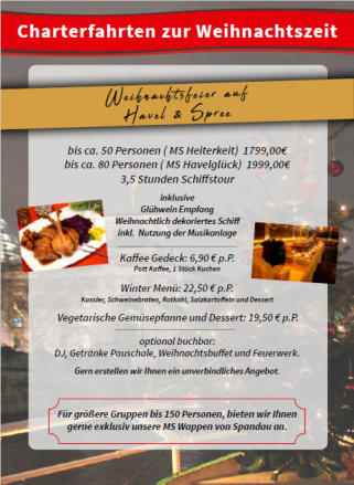 Ihre Weihnachtsfeier auf Havel & Spree!